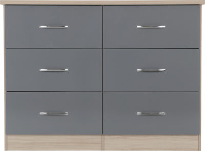 Nevada 6 Drawer Chest in Grey Gloss/Light Oak Effect Veneer